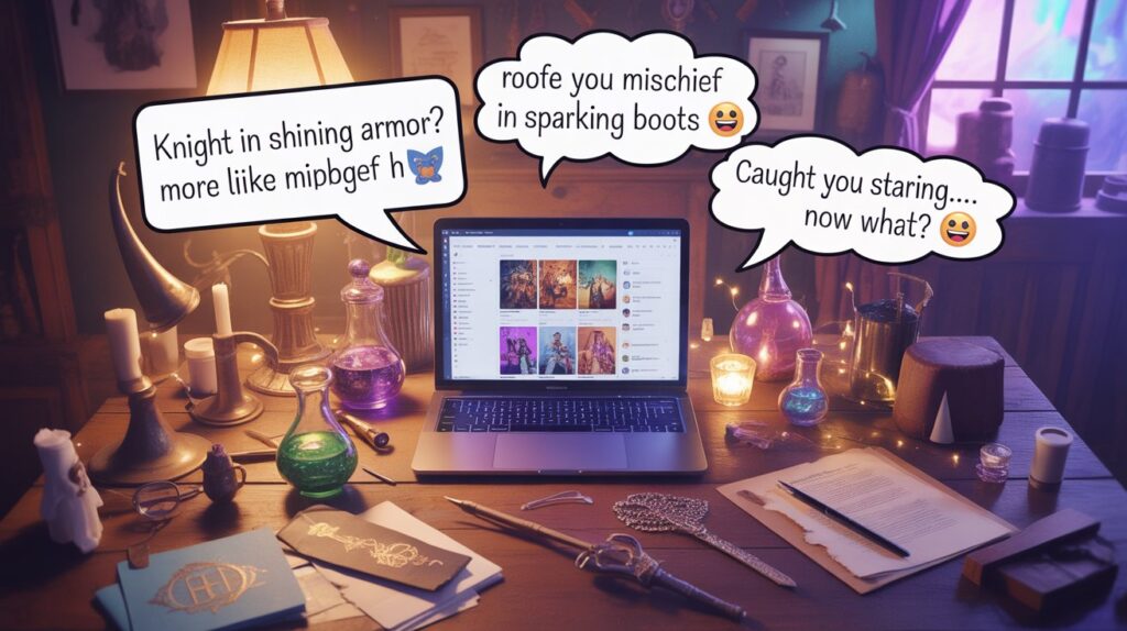 Mix light teasing, playful humor, and confident phrasing. Keep it charming and engaging, not aggressive. Use moderate emojis and highlight the vibe rather than overloading with bold words