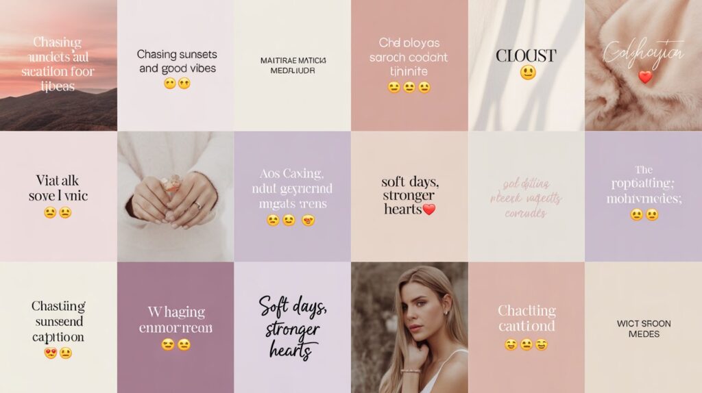 Aesthetic captions should feel clean, smooth, and visually pleasing just like the photos they support. Use minimalist wording, soft emotions, and well-chosen expressive keywords. This style works perfectly for fashion shots, portraits, landscapes, or soft-mood edits. By focusing on atmosphere, vibes, and subtle feelings, your captions help complete the aesthetic of your post. Think simple, dreamy, and effortlessly beautiful.