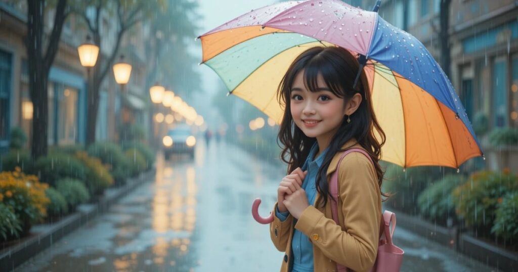 - Cute umbrellas make rainy walks more fun and happy
